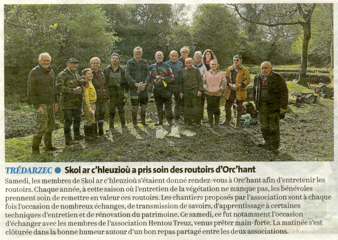 Actu 2026, Chantiers, Routoirs Troguéry et Trédarzec : 2 chantiers samedi 11 avril 2026 14 avril 2026 Skol_ar_Chleuziou Chantier « pierres sèches » avec l’équipe de Plufur Hentou Treuz sur le site Gwenored : Le Télégramme du 13 avril 2026. Ouest-France du 13 avril 2026. Ce même jour, une autre équipe travaillait sur Trédarzec : Ouest-France du 14 avril 2026.