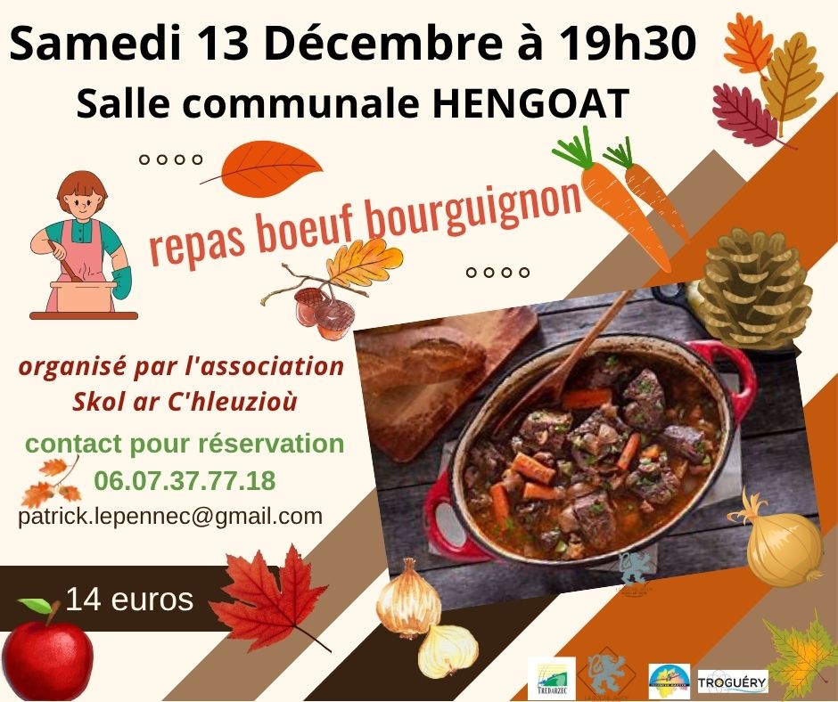 A midi un repas chaud est prévu à la salle des fêtes de Hengoat.