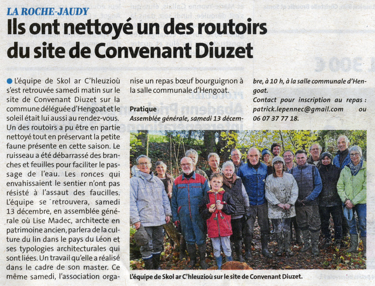 Actu 2025, Chantiers, Routoirs La Roche-Jaudy : Nettoyage du site de Convenant Diuzet 10 décembre 2025 Skol_ar_Chleuziou