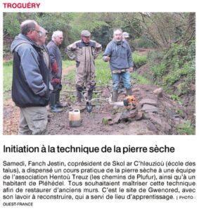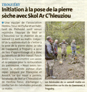 Chantier « pierres sèches » avec l’équipe de Plufur Hentou Treuz sur le site Gwenored :